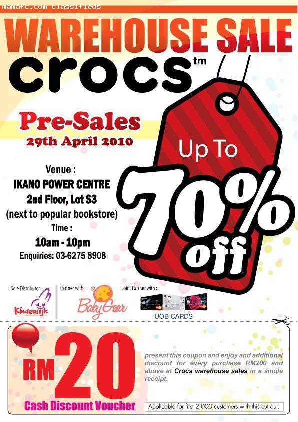 Okeyss...buat peminat kasut cik buaya dengan nama glamer dan masyukkk nye CROCS, cepat!! cepat!! ada warehouse sale! Yeahhhh!!!